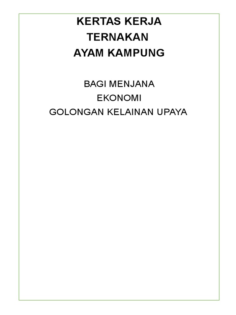 KERTAS KERJA TERNAKAN AYAM KAMPUNG BAGI MENJANA EKONOMI GOLONGAN KELAINAN UPAYA. Dapatkan contoh kertas kerja projek ternakan lembu feedlot disini. Proposal bantuan ternak ayam.